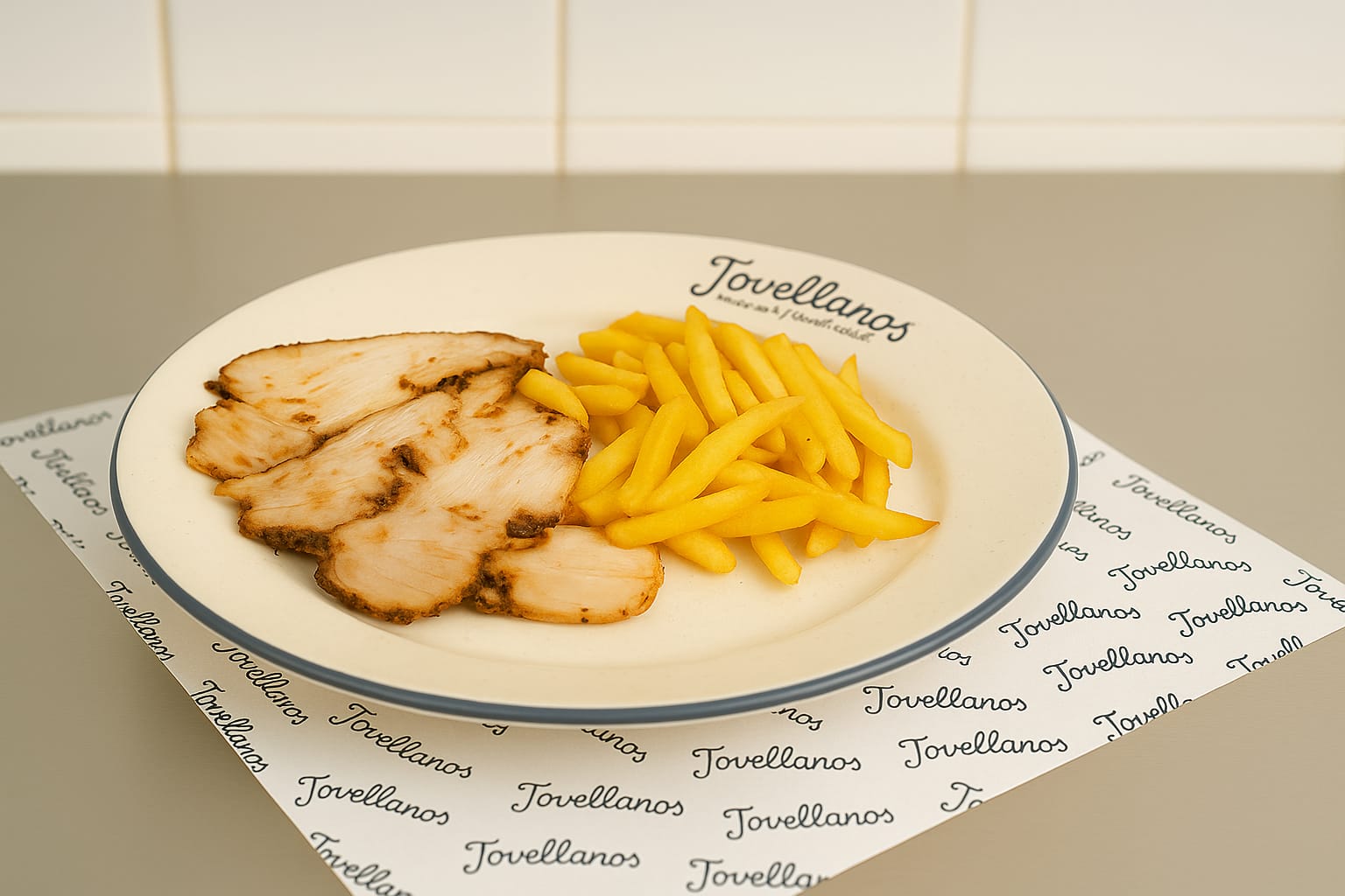Con patatas fritas y jamon