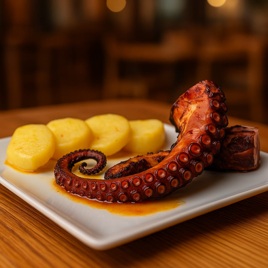 TOMATE NATURAL, MOZZARELLA Y PULPO